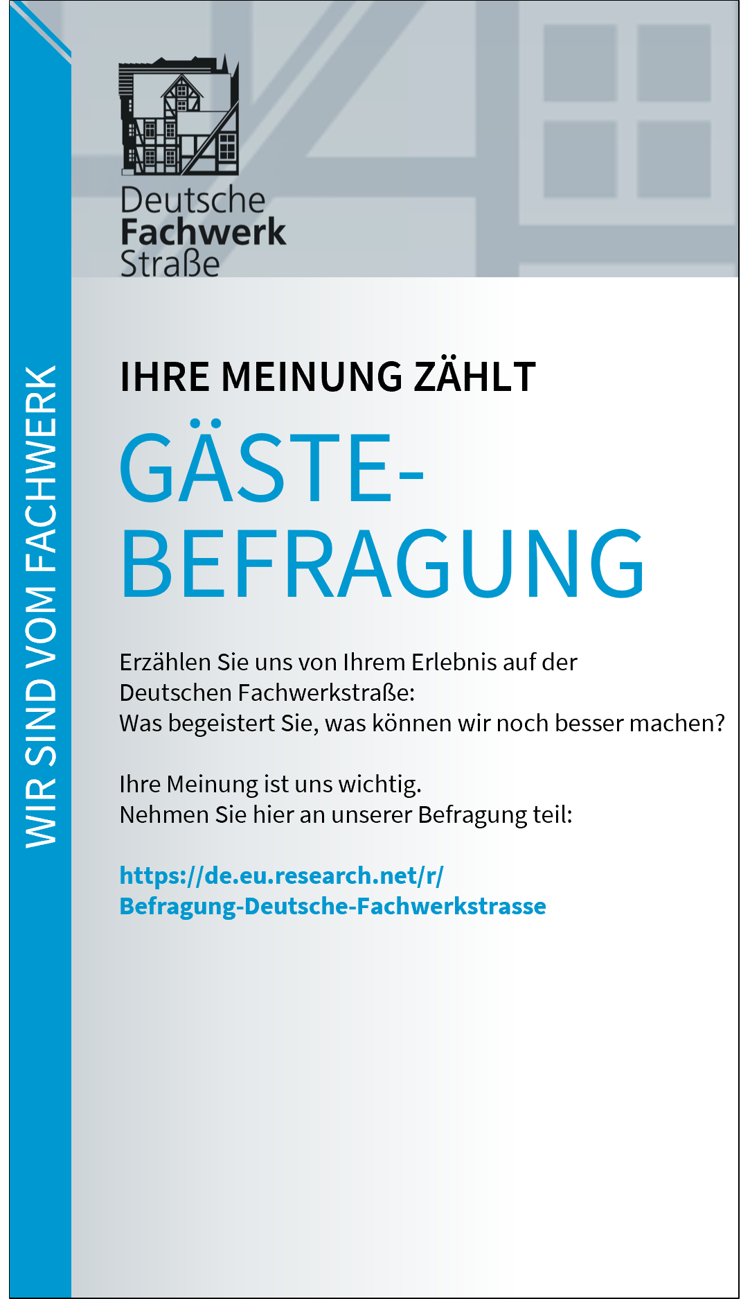 Um Gästen noch ein besseres Erlebnis der Deutschen Fachwerkstraße zu ermöglichen, findet eine Gästebefragung statt. Diese nimmt etwa 10 Minuten in Anspruch und richtet sich an Einwohnerinnen und Einwohner und Besucherinnen und Besucher gleichermaßen.